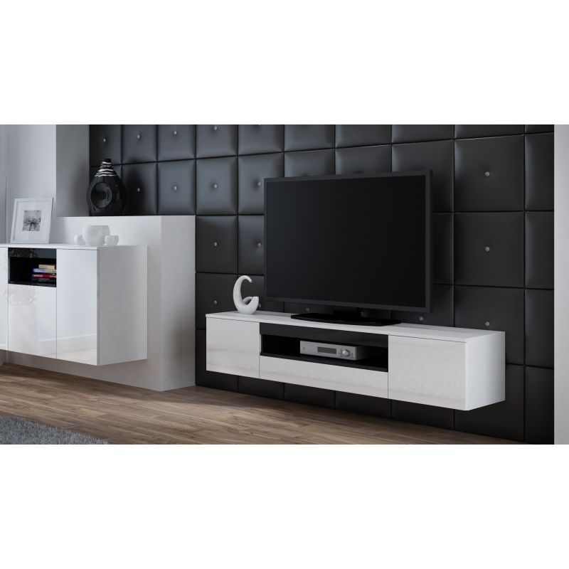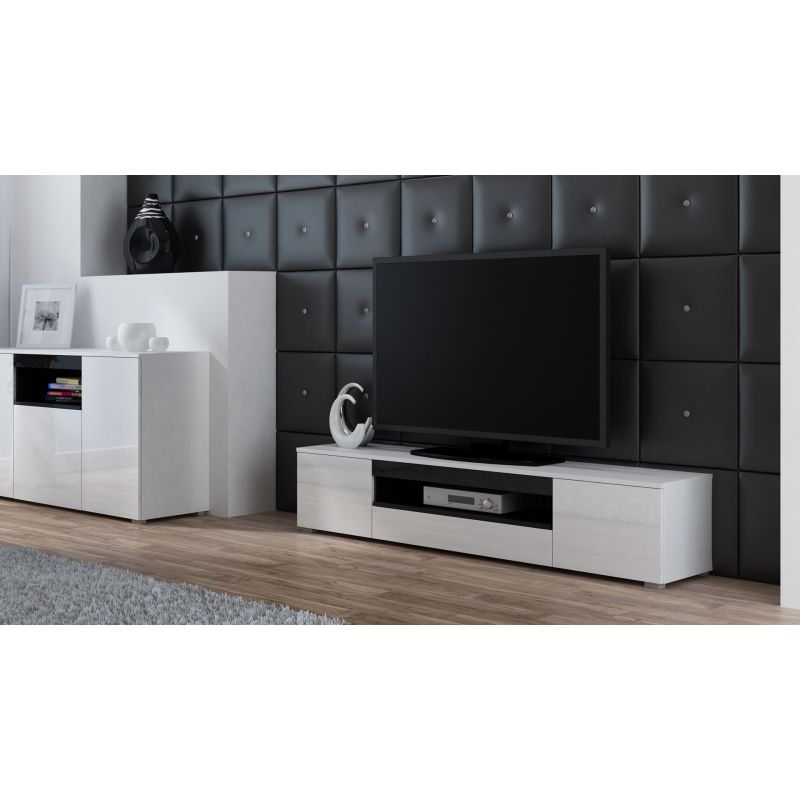 Szafka RTV VIVA 180 biały/ biały połysk+ czarny