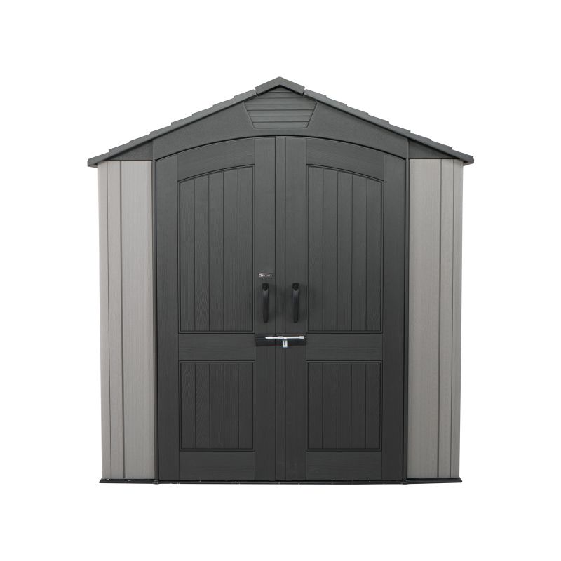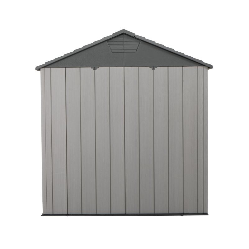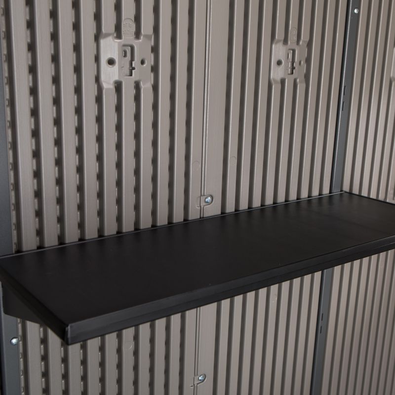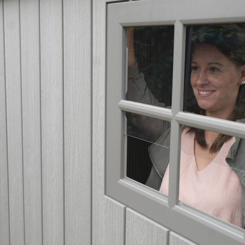 Z pomocą konfigurowalnej półki naściennej oraz półek narożnych, dopasujesz pomieszczenie wedle potrzeby, a dzięki strukturze imitującej prawdziwe drewno świetnie wkomponuje się w otoczenie ogrodu. Ściany oraz dach pokryte są warstwą ochronną odporną na promieniowanie UV, aby zapobiegać blaknięciu i pękaniu. Odporna na plamy powierzchnia nigdy nie wymaga malowania – to zdecydowana przewaga nad szopami drewnianymi!.