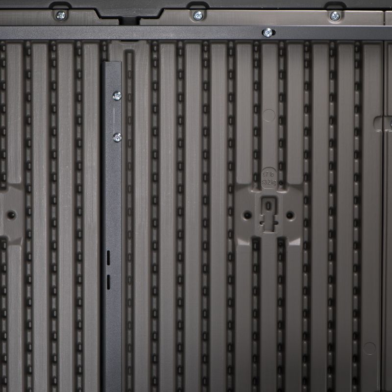 100% HDPE – Konstrukcja wykonana ze 100% polietylenu wysokiej gęstości o podwójnych ścianach sprawia, że szopa jest niezwykle wytrzymała. Zastosowanie dwuściennych paneli powoduje dużo większą elastyczność i pracę tworzywa oraz odporność min. na silny wiatr.