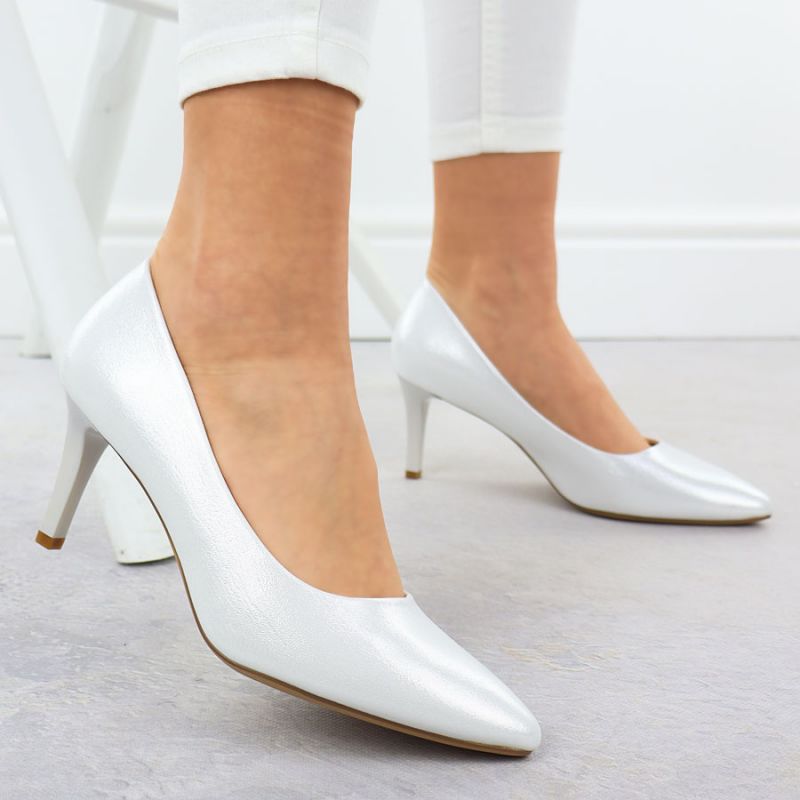 Szpilki czółenka damskie satynowo srebrne Sergio Leone 1336