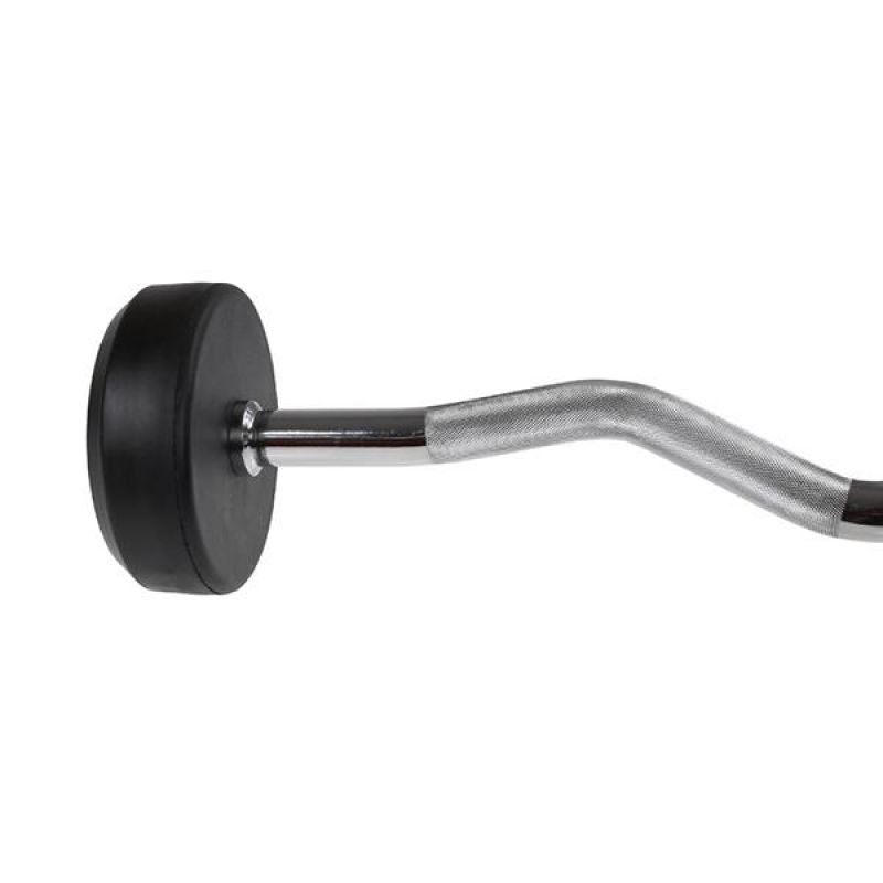 Łamana sztanga / gryf stały GSL usatysfakcjonuje najbardziej wymagających użytkowników. Gryf wykonany został z wysokiej jakości hartowanej stali chromowanej. Posiada on radełkowaną część chwytną, która umożliwia pewny chwyt. Obciążenia pokryte są gumową powłoką wysokiej jakości.