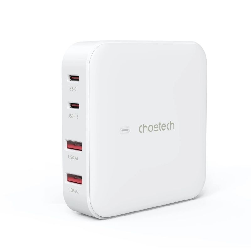 Szybka ładowarka sieciowa GaN Choetech PD8008 100W 2x USB-A / 2x USB-C - biała