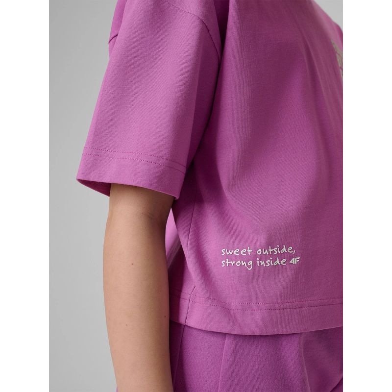 T-shirt loose z nadrukiem dziewczęc 4F 4FJRSS26TTSHF3827-51S