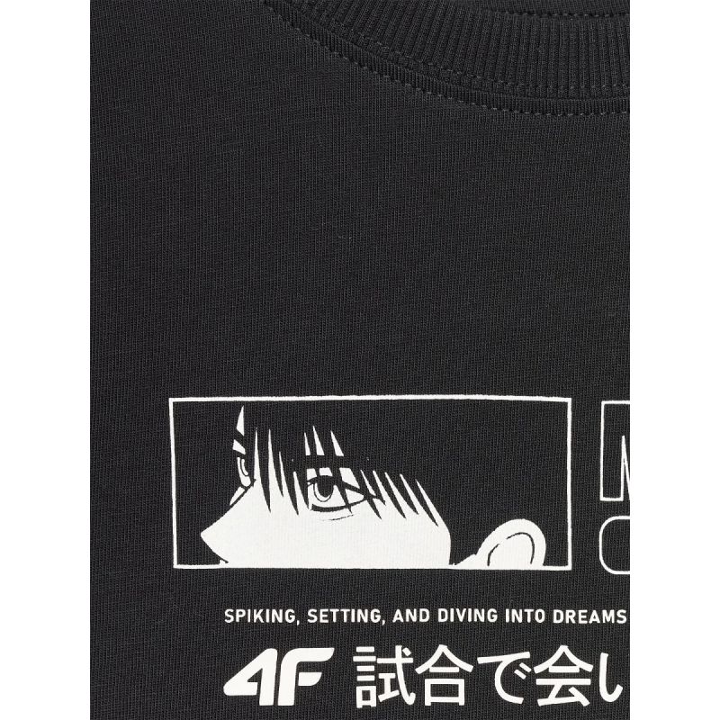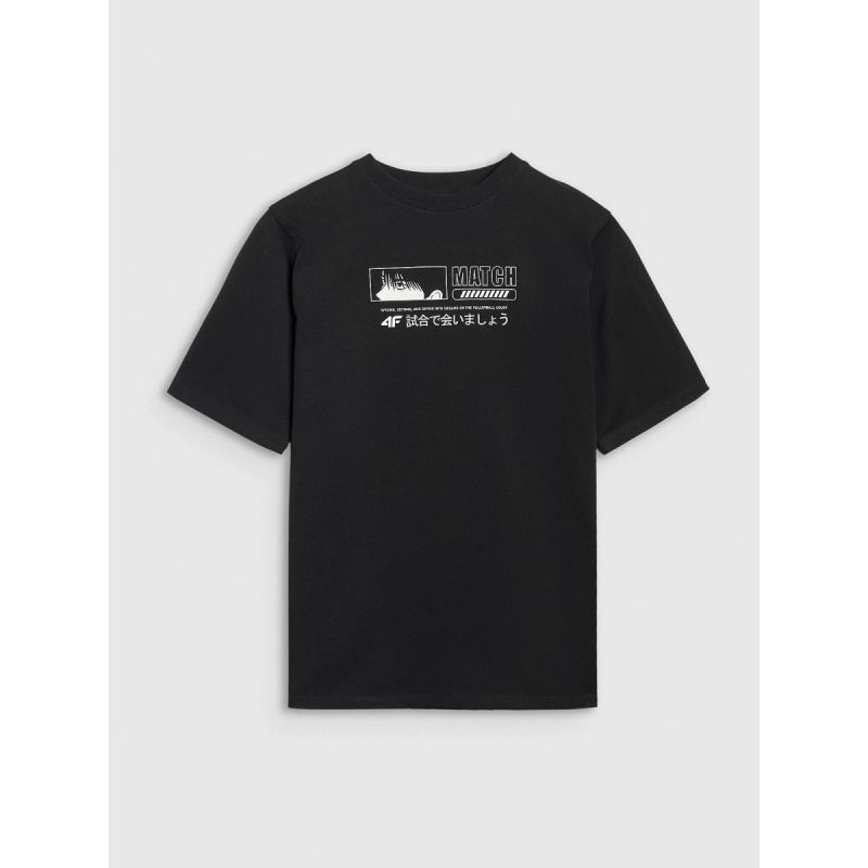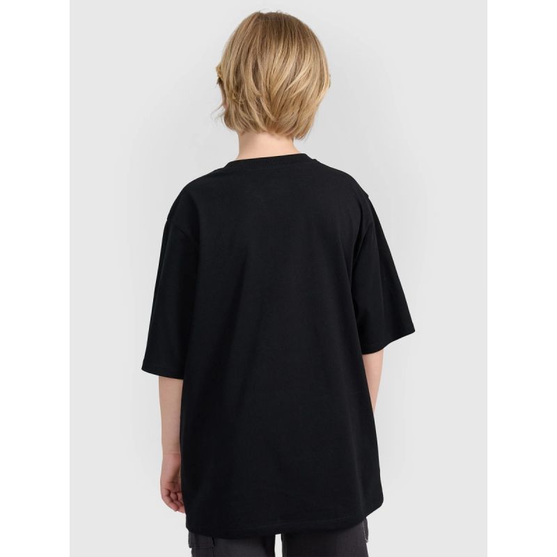 T-shirt wykonany z dzianiny single jersey świetnie dopasowuje się do sylwetki i jest elastyczny, co zwiększa komfort noszenia. Dzięki miękkości bawełny i solidnej gramaturze materiał pozostaje trwały, nie prześwituje i dobrze znosi częste pranie. Standardowa długość do linii bioder oraz lekkie ribowanie przy dekolcie zapewniają wygodę i estetyczne wykończenie. Nadruk z przodu dopełnia całości, dodając koszulce młodzieżowego charakteru.