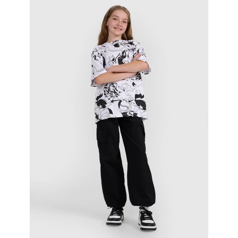 Dziewczęca koszulka o kroju oversize to idealny wybór na co dzień – zapewnia pełną swobodę ruchów i komfort noszenia. Wykonana w 100% z bawełny, jest miękka, trwała i przyjemna dla skóry. Grubszy materiał utrzymuje formę i zapewnia solidniejsze krycie, dzięki czemu koszulka świetnie sprawdza się w codziennych stylizacjach.