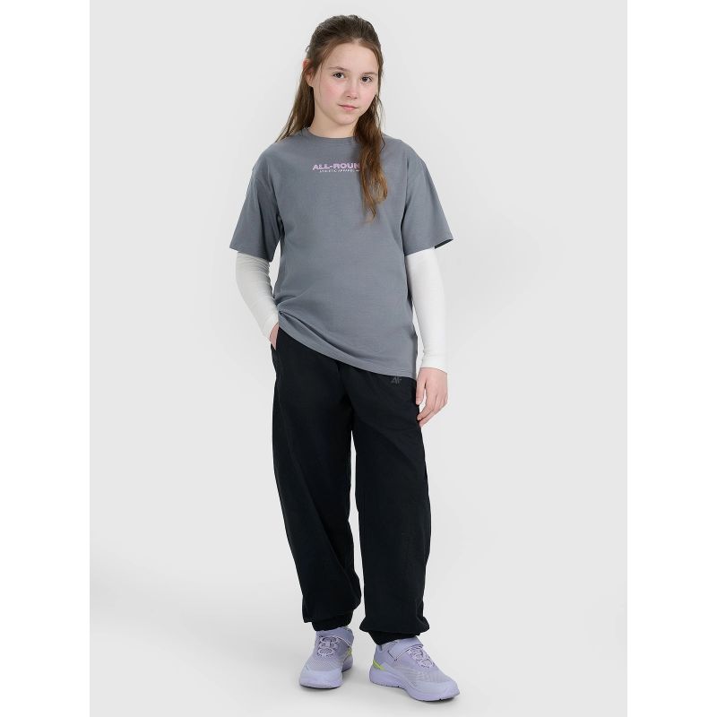 Dziewczęcy T-shirt to wygodna i stylowa propozycja na co dzień, która sprawdzi się zarówno w casualowych, jak i sportowych stylizacjach. Wykonany w 100% z bawełny o gramaturze 180 gsm, zapewnia miękkość, trwałość i komfort noszenia przez cały rok. Luźny krój oversize gwarantuje swobodę ruchów i nowoczesny wygląd, a gładka dzianina single jersey dobrze układa się na sylwetce. Klasyczny okrągły dekolt z delikatnym ribowaniem oraz napis z przodu podkreślają młodzieżowy charakter koszulki.