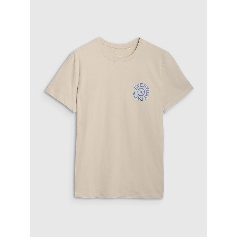 Okrągły dekolt z lekkim ribowaniem dodaje sportowej elegancji, a nadruk z napisem "Everyday Pace" podkreśla codzienny, swobodny charakter koszulki.