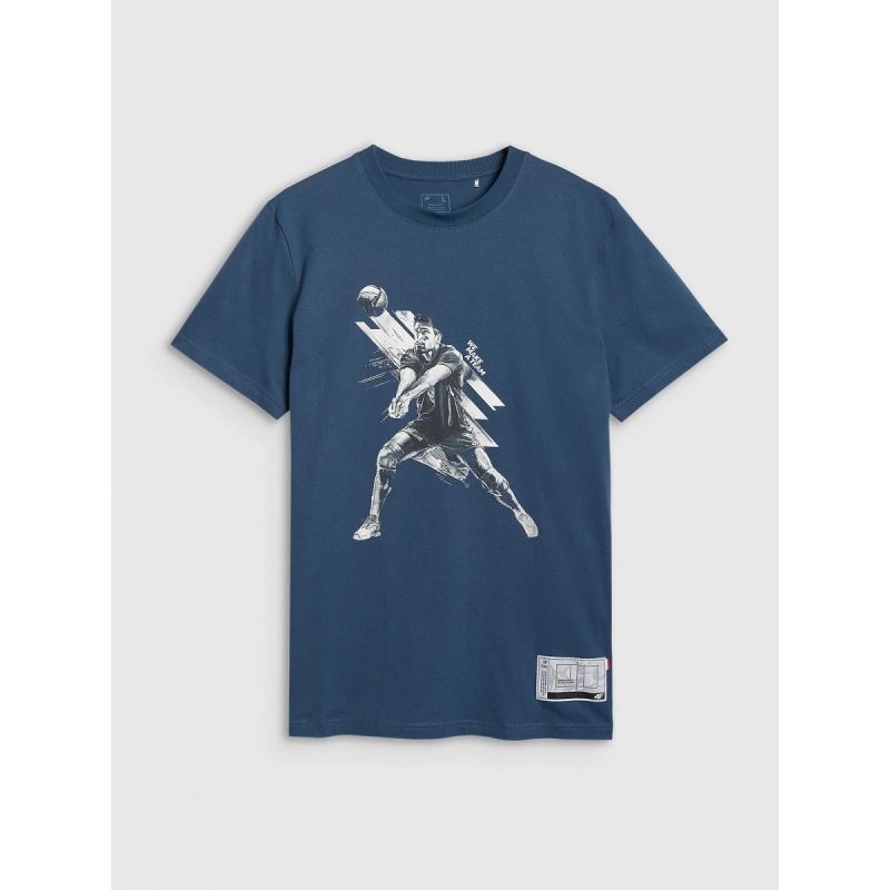 T-shirt męski regular z nadrukiem 4F – granatowy