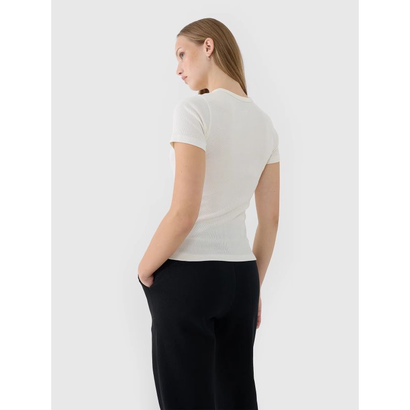 4. T-shirt slim z prążkowanej dzianiny damski 4F 4FWSS25TTSHF1968-11S
