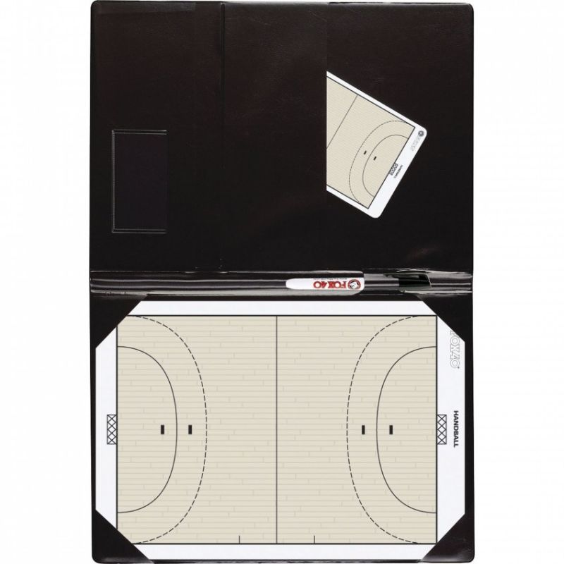 Tablica trenerska FOX40 Handball z aktówką Powierzchnie specjalne do pisania markerem Dwie strony: Jedna z pełnym polem i druga z powiększeniem połowy pola W zestawie: Etui z winylu z kieszeniami i paskiem do przenoszenia, dwie dwustronne tablice (jedna duża, druga kieszonkowa), marker Wymiary: 28x38 cm