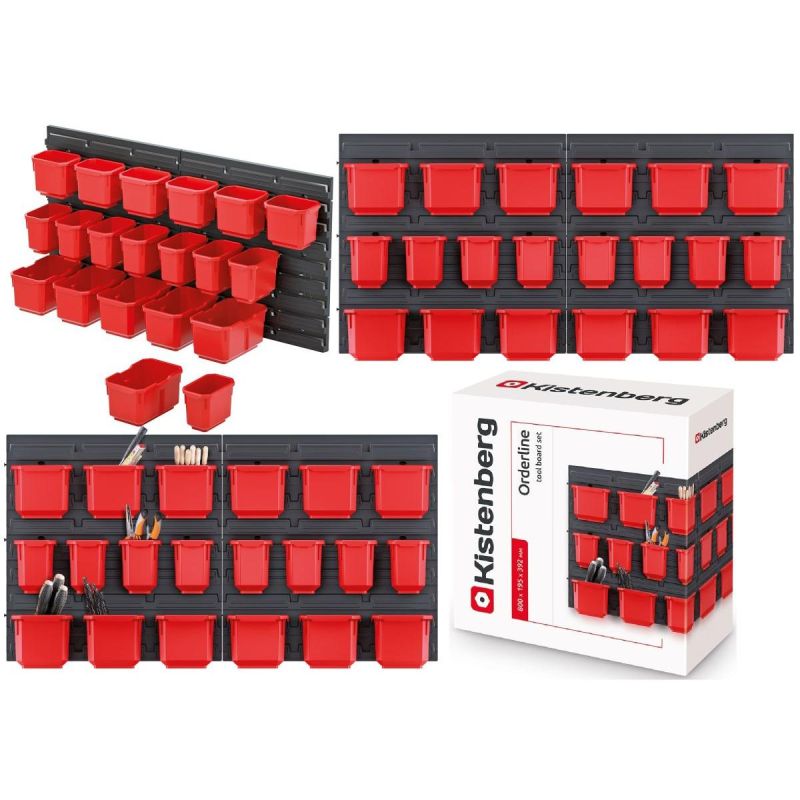 TABLICA WARSZTATOWA Z ZESTAWEM 20 POJEMNIKÓW ORDERLINE KISTENBERG to idealne rozwiązanie dla osób, które potrzebują skutecznej organizacji przestrzeni roboczej. Dzięki solidnym materiałom, łatwości montażu i elastyczności w rozmieszczaniu pojemników, jest to niezastąpione narzędzie w każdym warsztacie, garażu czy pracowni.