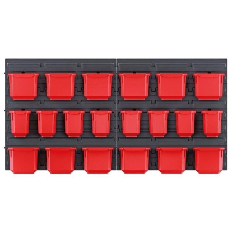 Tablica jest uniwersalna, zawiera w sumie 20 pojemników o dwóch różnych pojemnościach w montażowych na których zawiesisz pojemniki w dowolnej konfiguracji. Pojemniki możesz wykorzystać w warsztacie, na magazynie, w garażu a nawet w swojej pracowni artystycznej czy krawieckiej.