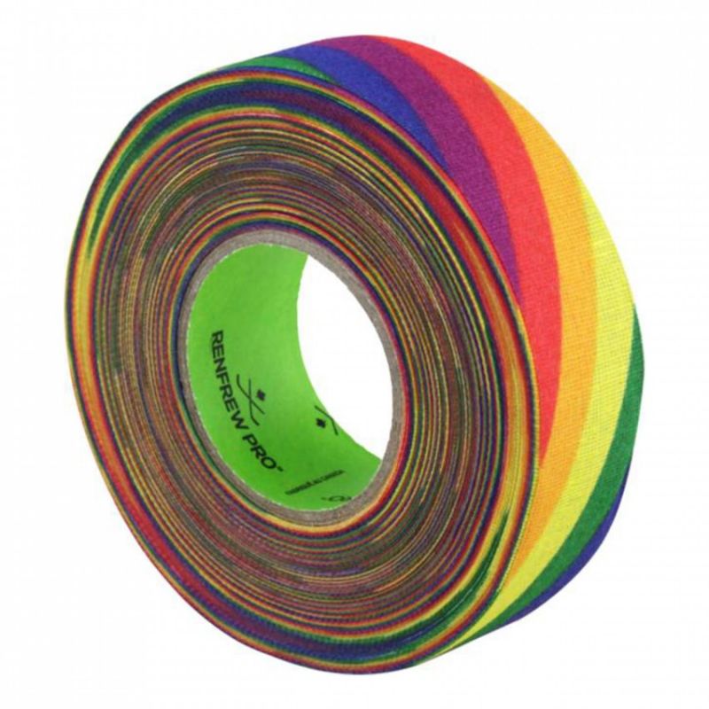 Taśma do kija hokejowego Renfrew Specjalnie zaprojektowana do dzisiejszych kompozytowych kijów hokejowych, taśma z tkaniny w kolorze tęczy Pro-Blade firmy Renfrew Pro zawiera zaawansowaną formułę klejącą nałożoną na podłoże z tkaniny poliestrowo-bawełnianej, co zapewnia bardziej solidną taśmę tkaninową o zwiększonej odporności na zużycie.