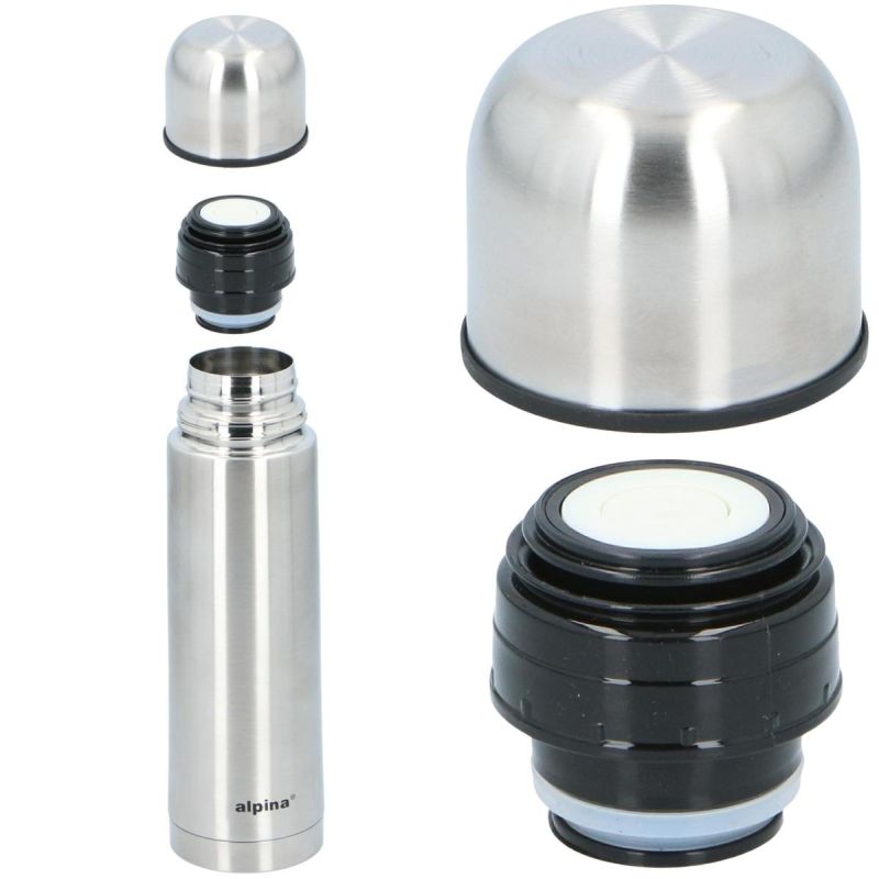 Zachowaj ciepło i smak ulubionego napoju z termosu turystycznego ALPINA 480 ml! Wykonany ze stali nierdzewnej, elegancki i szczelny – sprawdzi się w pracy, w aucie, w górach i na biwaku.