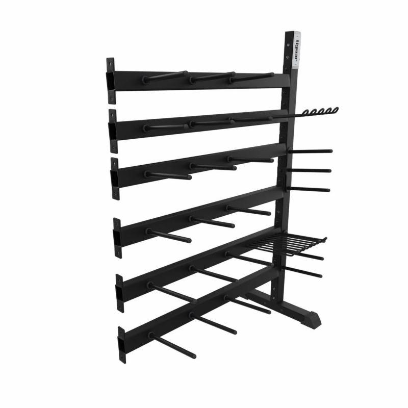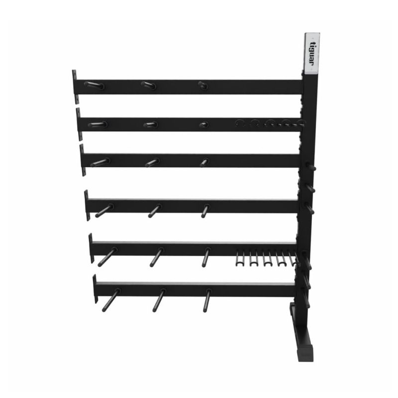 Dodatkowy moduł profesjonalnego stojaka służącego do pionowego przechowywania sztang typu powergym oraz butterfly w siłowniach i klubach fitness. Ergonomiczna konstrukcja rozwiązania łączy w sobie funkcję stojaka na gryfy oraz wieszaka na obciążenie, skutecznie zastępując dwa pojedyncze akcesoria. Uwaga! Produkt wymaga wersji podstawowej, do której będzie zamontowany. Modułowa konstrukcja Podstawowa wersja stojaka modułowego na powergym 22/24 szt. pozwala na przechowywanie gryfów w pozycji pionowej i może pomieścić odpowiednio: 22 komplety tiguar powergym (obciążenia plus gryf) 24 komplety tiguar butterfly (obciążenia plus gryf) Dodatkowy moduł pozwala na rozbudowanie stojaka podstawowego i dwukrotne zwiększenie jego pojemność. Dzięki temu możliwe jest swobodne dostosowanie rozwiązania do indywidualnych potrzeb klienta oraz przechowywanie większej ilości obciążeń i gryfów w łatwo dostępnej i wygodnej formie. Dodatkowy moduł montowany jest do nogi stojaka podstawowego, co zapewnia maksymalną stabilność konstrukcji. Obciążenia przechowywane są na sześciu rzędach solidnych wieszaków. Na jednym z pionowych ramion stojaka znajdują się dodatkowe wieszaki, na których można przechowywać zaciski. Gumowe odboje na końcach każdego wieszaka nie tylko amortyzują uderzenia, ale także eliminują ryzyko powstawania rys i odprysków na powierzchni sprzętu treningowego podczas odkładania obciążenia na stojak. Zaokrąglona zaślepka z tworzywa sztucznego ułatwia płynne odkładanie talerzy, minimalizując hałas. Takie rozwiązanie nie tylko podkreśla wysokie walory estetyczne produktu, ale pozwala na ich zachowanie w długim okresie eksploatacji. Komfortowe i wygodne magazynowanie gryfów, obciążeń i zacisków w jednym miejscu, a także możliwość ustawienia stojaka bezpośrednio przy ścianie zapewnia dużą oszczędność przestrzeni przeznaczonej na przechowywanie sprzętu treningowego. Najwyższa jakość wykonania Moduł stojaka na powergym to solidna stalowa konstrukcja nośna wykonana z metalowych profili grubości 3 mm. Trwałość połączenia poszczególnych elementów zapewniają śruby klasy 10.9, które poddane zostały procesowi galwanizacji. Dodatkowe pokrycie czarnym cynkiem zwiększa ich odporność na korozję, znacząco wydłużając żywotność sprzętu i zachowanie wysokiej estetyki z biegiem czasu. Solidna podstawa modułu stojaka na powergym z dodatkowym karbowaniem na spodzie zapewnia wysoką przyczepność i stabilność na różnego rodzaju podłożu, gwarantując pełne bezpieczeństwo nawet przy maksymalnym obciążeniu stojaka. Produkt pomalowany został proszkowo, co podkreśla wysokie walory estetyczne rozwiązania. Zastosowanie przechowywanie i magazynowanie sztang powergym i butterfly organizacja przestrzeni siłowni i klubu fitness utrzymanie porządku na sali treningowej Mocne strony mocna, stabilna konstrukcja zwiększona przyczepność do podłoża możliwość ustawienia bezpośrednio przy ścianie możliwość rozbudowania o dodatkowe moduły lun wieszaki duża pojemność kompatybilny wizualnie z innymi stojakami tiguar atrakcyjny design długi okres gwarancyjny Ważne informacje długość 137 cm głębokość 70 cm wysokość 166.1 cm waga: 84 kg kolor: czarny nie zawiera akcesoriów wyprodukowano w Polsce Okres gwarancji: 60 miesięcy W trakcie użytkowania Przechowywać z dala od promieni UV, rozpuszczalników organicznych i nieorganicznych.