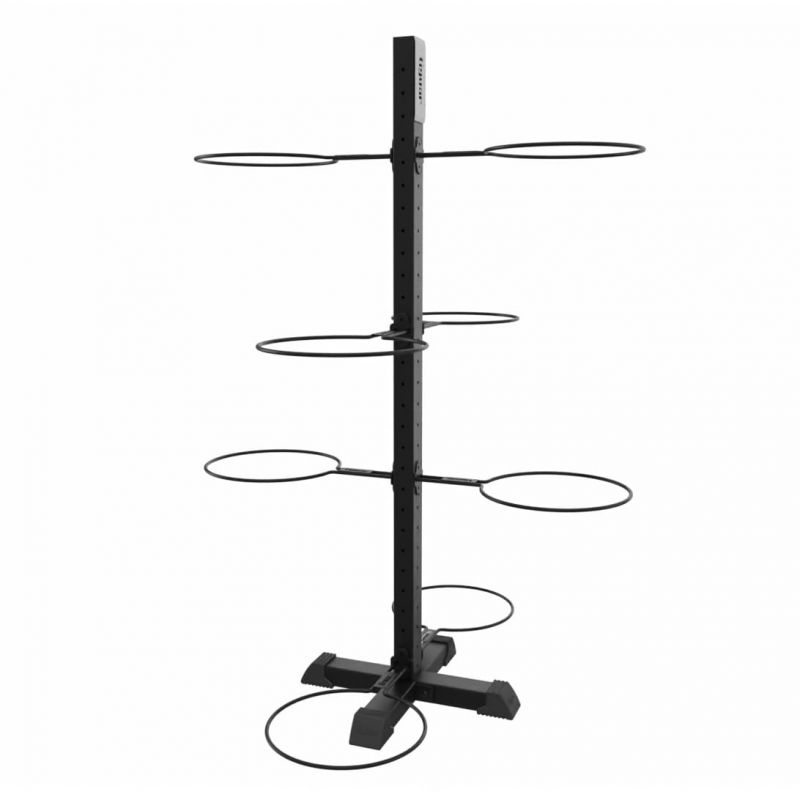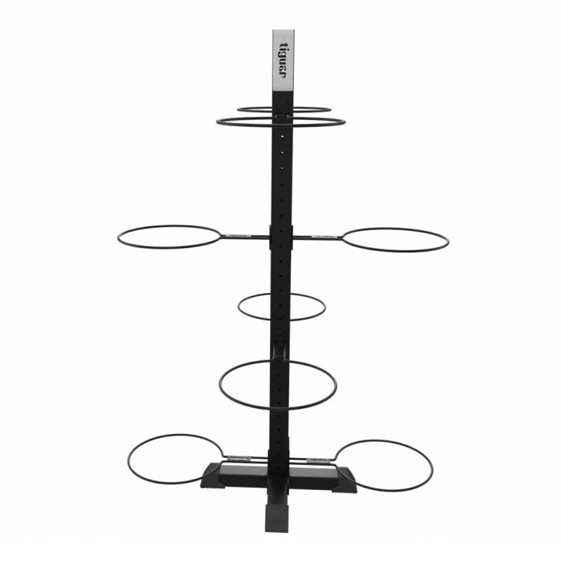 Profesjonalny stojak przeznaczony do przechowywania piłek bodyball w siłowniach i klubach fitness. Modułowa konstrukcja pozwala na dostosowywanie rozwiązania według indywidualnych potrzeb, dlatego stojaki dostępne są w trzech wersjach, służących do przechowywania 4, 6 lub 8 piłek. Stabilna konstrukcja Stojak na piłki bodyball składa się ze spawanej, stalowej konstrukcji nośnej, do której montowane są pojedyncze wieszaki. Wysoką przyczepność i stabilność na różnego rodzaju podłożu zapewniają pogrubione ścianki stopki podstawy, które posiadają dodatkowe karbowanie na spodzie. Takie rozwiązanie zapewnia maksymalne bezpieczeństwo i wygodę korzystania niezależnie od tego, czy stojak jest wypełniony w całości, czy częściowo. Wykonana z drutu o średnicy 10 mm obręcz wieszaka gwarantuje odpowiednią sztywność, umożliwiając bezpieczne przechowywanie piłek o różnorodnych rozmiarach (średnica od 50 do 75 cm) i maksymalnej wadze do 5 kg. Owalny kształt znacznie ułatwia zarówno odkładanie, jak i zdejmowanie piłek ze stojaka. Stojak na piłki bodyball może pomieścić odpowiednio 4, 6 lub 8 piłek, w zależności od konfiguracji. Umiejscowienie obręczy przeznaczonych do przechowywania piłek w jednej osi (dla stojaka na 4 i 6 piłek) pozwala na ustawienie go bezpośrednio przy ścianie, co zapewnia jeszcze większą oszczędność miejsca. W wersji na 8 szt. piłek bodyball wieszaki mocowane są na przemian. Najwyższa jakość wykonania Stojak na piłki bodyball wykonany został z profili o grubości 3 mm. W łączeniach poszczególnych elementów zastosowano śruby klasy 10.9, które gwarantują trwałość połączenia nawet przy maksymalnym obciążeniu. Estetyczne i trwałe wykończenie zapewnia proces malowania proszkowego, któremu poddany został stojak. Dzięki temu możliwe było zachowanie jednolitej, nowoczesnej kolorystyki, która wpisuje się w klimat każdej przestrzeni treningowej. Modułowy stojak na piłki bodyball to doskonały wybór dla każdego, kto ceni funkcjonalność, porządek i wysoką estetykę w przestrzeni treningowej. Rozwiązanie świetnie sprawdzi się w siłowniach i klubach fitness, gdzie porządek i bezpieczeństwo przestrzeni przeznaczonej do przechowywania sprzętu treningowego, ma istotne znaczenie. Uwaga! Podane w specyfikacji wymiary są wymiarami samego stojaka, nie uwzględniają wielkości piłek. Zastosowanie przechowywanie i magazynowanie organizacja przestrzeni siłowni i klubu fitness utrzymanie porządku na sali treningowej Mocne strony mocna, stabilna konstrukcja zwiększona przyczepność do podłoża kompatybilny wizualnie z innymi stojakami tiguar atrakcyjny design Ważne informacje szerokość: 130 cm głębokość: 130 cm wysokość: 186.1 cm waga: 30.2 kg udźwig: do 5 kg / wieszak kolor: czarny minimalna średnica piłki: 50 cm maksymalna średnica piłki: 75 cm Okres gwarancji: 12 miesięcy W trakcie użytkowania Przechowywać z dala od promieni UV, rozpuszczalników organicznych i nieorganicznych. Produkt przeznaczony do użytku wewnątrz pomieszczeń.