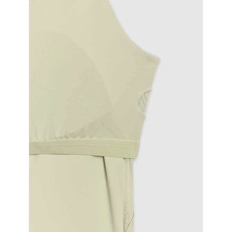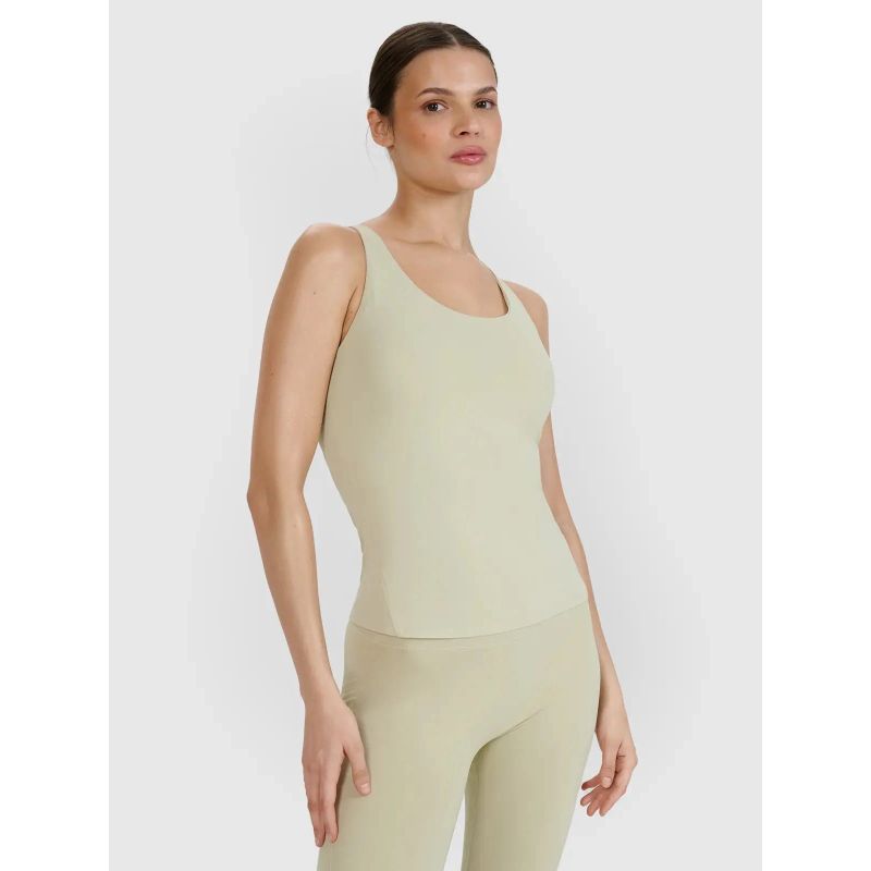 Ten damski top do jogi został stworzony, aby wspierać zarówno początkujące, jak i zaawansowane osoby praktykujące jogę. Elastyczny, oddychający materiał oraz szybkoschnące włókna 4FDry zapewniają komfort podczas każdej sesji – od pracy z oddechem po dynamiczne przejścia między pozycjami. Krój slim subtelnie podkreśla sylwetkę, a miękka, wytrzymała dzianina interlock gwarantuje gładkość, elastyczność i trwałość. Dwuwarstwowa konstrukcja z wbudowanym biustonoszem oraz niskim poziomem wsparcia sprawia, że top idealnie sprawdza się podczas spokojnych, uważnych praktyk, pilatesu i codziennych aktywności. Wyjmowane miseczki, stabilizująca guma pod biustem, okrągły dekolt i bokserski tył dopełniają funkcjonalność i swobodę ruchu.