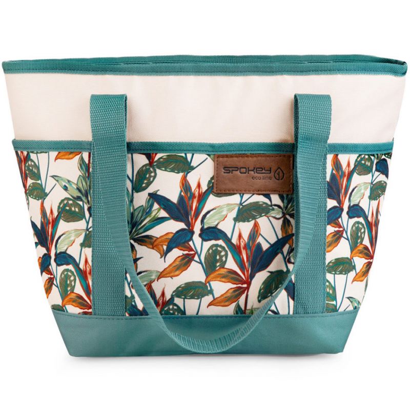 Torba termiczna Spokey Eco Simply zielono-beżowa 929509 Torba plażowa Spokey ułatwi przenoszenie niezbędnych rzeczy. Pojemna konstrukcja typu shopper. Warstwa zewnętrzna z poliestru 600D wzmocniona pianką PE. Aluminiowa warstwa wewnętrzna tworzy izolację termiczną zapobiegającą nagrzewaniu się zawartości torby. Zamek błyskawiczny. Dodatkowa kieszonka. Uchwyty. Udźwig do 10 kilogramów. Pochodzi z linii Eco Simply czyli rzeczy wyprodukowanych z wykorzystaniem plastiku z recyklingu. Dane techniczne:· wymiary: 39x15x27 cm· pojemność: ok. 16 l· materiał: RPET, pianka PE, folia aluminiowa