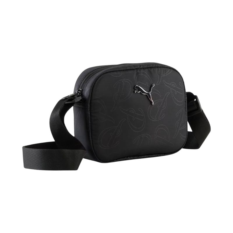 Torebka Puma Pop Crossbody czarna 91338 07 Torebka Puma typu crossbody to praktyczny dodatek pozwalający przechowywać najpotrzebniejsze rzeczy. Główna komora zapinana na zamek. Tylna kieszeń na zamek. Regulowany pasek na ramię. Model został wykonany w co najmniej 50% z materiałów pochodzących z recyklingu. Dane techniczne:· Materiał: 100% poliester· Wymiary: 18 x 14 x 5 cm· Pojemność: 1 l