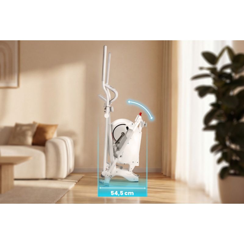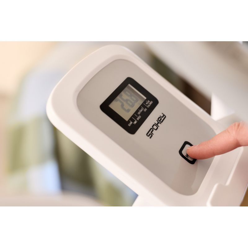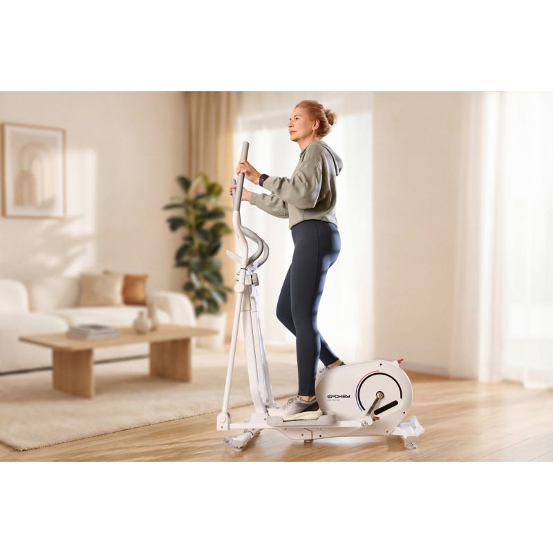 CRYSTAL – trenażer eliptyczny do treningu całego ciała Spokey CRYSTAL to składany trenażer eliptyczny, który pozwala zaangażować całe ciało podczas domowego treningu cardio – bez przeciążania stawów. Wyposażony w ruch wsteczny, pomiar pulsu, 8-stopniowy opór magnetyczny i wyświetlacz LCD, oferuje funkcjonalność, wygodę i oszczędność miejsca w jednym. Wprowadzenie Szukasz urządzenia, które pomoże Ci zadbać o formę bez wychodzenia z domu? Trenażer eliptyczny Spokey CRYSTAL to idealny wybór dla osób, które chcą połączyć skuteczny trening całego ciała z komfortem i oszczędnością miejsca. Dzięki magnetycznemu oporowi, cichej pracy i możliwości złożenia, trenażer CRYSTAL sprawdzi się nawet w niewielkich przestrzeniach. Urządzenie angażuje najważniejsze grupy mięśniowe, nie obciążając stawów – dlatego doskonale nadaje się zarówno dla początkujących, jak i zaawansowanych użytkowników. Dlaczego warto wypróbować rowerek treningowy Spokey ZEN? Trening całego ciała bez obciążania stawówRuch eliptyczny angażuje mięśnie nóg, rąk, pleców i brzucha, jednocześnie chroniąc stawy przed nadmiernym naciskiem – idealny wybór dla osób w każdym wieku.Ruch wsteczny dla urozmaicenia ćwiczeńMożliwość poruszania się także do tyłu pozwala aktywować dodatkowe partie mięśni i wzbogacić codzienny trening.8-stopniowy opór magnetycznyRęczna regulacja oporu pozwala dopasować poziom intensywności ćwiczeń do indywidualnych potrzeb – od rozgrzewki po intensywny trening cardio.Pomiar pulsu i dane treningoweWbudowane sensory pulsu oraz ekran LCD pomagają monitorować kondycję i postępy: czas, prędkość, dystans, spalone kalorie i całkowity przebieg (ODO).Składany z kółkami transportowymiPo zakończeniu ćwiczeń trenażer bez trudu można złożyć i schować w dogodnym miejscu. Uchwyt na tablet lub smartfonUchwyt zapewnia możliwość wygodnego korzystania z multimediów lub aplikacji fitness w trakcie ćwiczeń. Szczegółowy opisTrenażer Spokey CRYSTAL to uniwersalny trenażer eliptyczny, który łączy skuteczność treningu z pełnym komfortem użytkowania. Dzięki 4-kilogramowemu kołu zamachowemu z dwukierunkowym ruchem ćwiczenia są płynne i bardziej zróżnicowane. Dodatkowo, 8-stopniowa regulacja oporu magnetycznego sprawia, że sprzęt sprawdzi się zarówno dla osób początkujących, jak i zaawansowanych. Ergonomiczna konstrukcja z długością kroku 31 cm zapewnia naturalny i komfortowy ruch dla każdego użytkownika. Dużą zaletą sprzętu jest funkcja składania – po złożeniu trenażer zajmuje znacznie mniej miejsca, więc łatwiej go schować. Dane techniczne Typ: trenażer eliptyczny Rodzaj oporu: magnetyczny, ręczny Liczba stopni oporu: 8 Waga koła zamachowego: 4 kg (dwukierunkowe) Funkcje wyświetlacza: czas, prędkość, dystans, kalorie, puls, przebieg całkowity (ODO), scan Długość kroku: 31 cm Pomiar pulsu: tak (czujniki w uchwytach) Wymiary: 121 × 61,5 × 157,5 cm Wymiary po złożeniu: 54,5 × 61,5 × 158 cm Składanie: tak Korba: 3-częściowa wysokiej jakości Uchwyt na tablet/smartfon: tak Kółka transportowe: tak Waga urządzenia: 33 kg Maksymalna waga użytkownika: 130 kg Certyfikaty, normy i ostrzeżenia Zgodność z normami bezpieczeństwa UE. Produkt przeznaczony wyłącznie do użytku domowego. Urządzenie nie jest przeznaczone dla dzieci. Użytkowanie i pielęgnacja Trenuj w dobrze wentylowanym pomieszczeniu i na płaskiej powierzchni Używaj obuwia sportowego z dobrą przyczepnością Po każdym treningu przetrzyj uchwyty i pulpit suchą szmatką Regularnie sprawdzaj mocowania i stabilność sprzętu Nie używaj trenażera na zewnątrz lub w wilgotnym otoczeniu Składaj i przechowuj w pozycji pionowej w suchym miejscu Przed pierwszym użyciem zapoznaj się z instrukcją obsługi. Unikaj kontaktu z wodą i przechowuj sprzęt w suchym miejscu. Odłącz zasilanie, gdy nie używasz sprzętu przez dłuższy czas. Najczęściej zadawane pytaniaCzy trenażer CRYSTAL nadaje się dla początkujących?Tak, 8-stopniowy opór magnetyczny pozwala zaczynać od lekkich ćwiczeń i zwiększać intensywność stopniowo. Czy na CRYSTAL można “chodzić do tyłu”?Tak – dwukierunkowy ruch koła zamachowego umożliwia także trening wsteczny. Jakie dane pokazuje ekran LCD?Wyświetlacz informuje o czasie treningu, prędkości, pokonanym dystansie, spalonych kaloriach, pulsie oraz całkowitym przebiegu (ODO). Czy urządzenie jest ciche?Tak – opór magnetyczny zapewnia bardzo cichą pracę, dzięki czemu możesz ćwiczyć nawet wieczorem bez obaw o spokój domowników. Jakie partie ciała pracują podczas treningu na CRYSTAL?Trenażer eliptyczny angażuje jednocześnie dolne i górne partie ciała – mięśnie nóg, pośladków, brzucha, pleców i ramion. To efektywny trening cardio, który wzmacnia całe ciało przy minimalnym obciążeniu stawów. Informacje dotyczące bezpieczeństwa: UWAGA! Jeśli odczuwasz ból lub ucisk w klatce piersiowej, nieregularne bicie serca, duszność, czujesz się słabo lub odczuwasz dyskomfort podczas ćwiczeń, NATYCHMIAST PRZERWIJ TRENING! Przed kontynuowaniem skonsultuj się z lekarzem. To urządzenie nie jest przeznaczone dla osób (