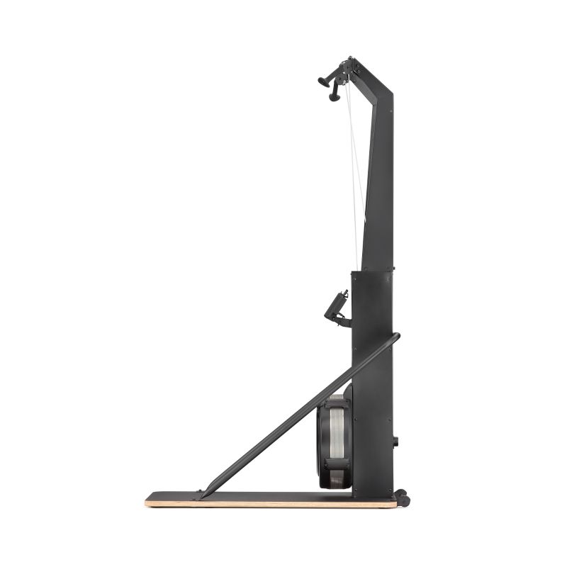 Trenażer narciarski Air Ski z podstawą marki Half Human to doskonały wybór dla osób pragnących wzmocnić mięśnie całego ciała i jednocześnie poprawić kondycję. Ten wszechstronny sprzęt do treningu narciarskiego angażuje mięśnie rdzenia, ramion i nóg, oferując pełnowartościowy trening cardio. Dzięki 10 poziomom regulowanego oporu powietrznego, trenażer zapewnia płynny i naturalny ruch, który można dostosować do własnych potrzeb. Świetnie sprawdza się zarówno przy podwójnych pociągnięciach, jak i w tradycyjnej technice naprzemiennej pracy ramion, co czyni go idealnym wyborem do treningów HIIT oraz intensywnych sesji sprintu.