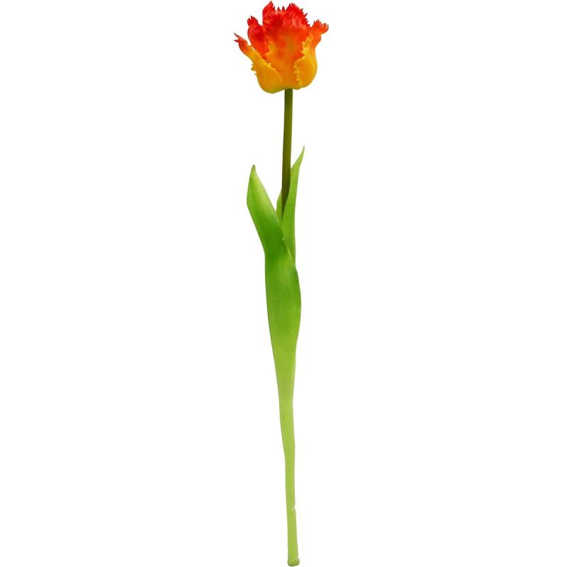 TULIPAN POMARAŃCZOWY 38CM JAK ŻYWY DEKORACJA WIOSENNA to doskonała dekoracja wiosenna, która zachwyca naturalnym wyglądem. Przypomina prawdziwy kwiat – od delikatnych płatków po realistycznie odwzorowaną łodygę i liście. Jest idealny do wazonów, stroików i wiosennych aranżacji wnętrz.