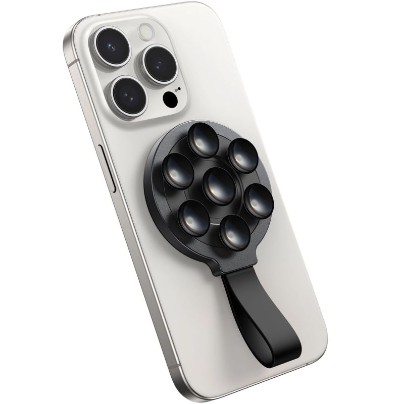 - Bezpiecznie utrzymuje telefon na każdej czystej i gładkiej powierzchni. Ma aż 7 przyssawek o szerokości 7,65 mm.