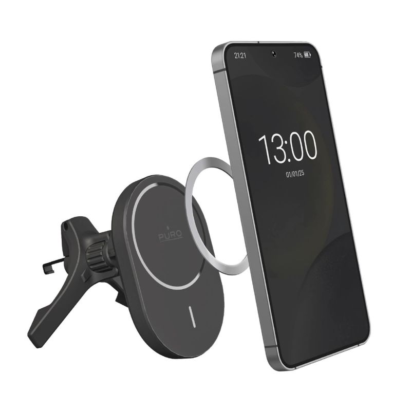 Uchwyt samochodowy Puro z ładowarką Qi2, kompatybilny z MagSafe – czarny