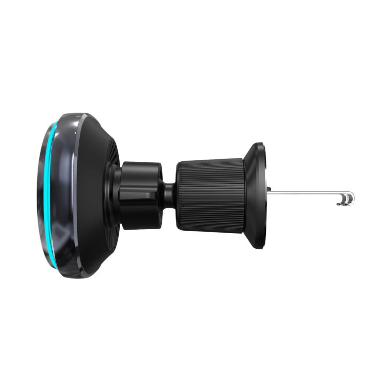 Wozinsky WCT5-Q6S2Y to inteligentne połączenie uchwytu samochodowego, szybkiej ładowarki bezprzewodowej oraz aktywnego chłodzenia. Dzięki mocy do 15W ładuje Twój telefon szybko i bezpiecznie, a wbudowany cichy wentylator wspomaga odprowadzanie ciepła, zapewniając optymalną temperaturę podczas ładowania. Uchwyt obsługuje technologię MagSafe oraz dołączony pierścień magnetyczny, dzięki czemu współpracuje zarówno z iPhone’ami od serii 12 wzwyż, jak i innymi smartfonami z ładowaniem bezprzewodowym (Qi). Zastosowane magnesy N52 (20 sztuk) zapewniają wyjątkowo stabilne trzymanie urządzenia, a podwójny hak umożliwia solidny montaż na kratce wentylacyjnej. Całość dopełnia elegancki, kompaktowy design i pełna możliwość regulacji kąta widzenia.