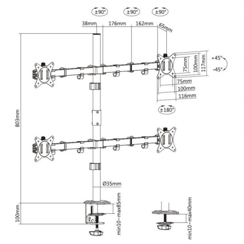 Maksymalny uchwyt VESA: 100 x 100 mm