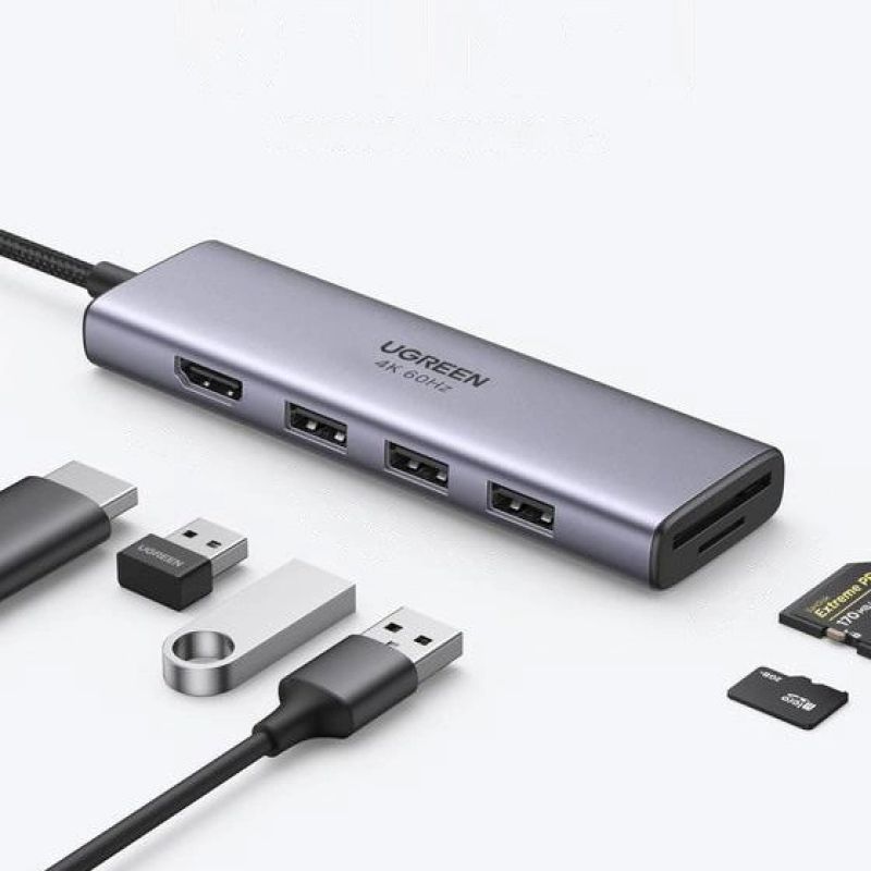 Ugreen 6w1 wielofunkcyjny HUB USB Typ C - 3x USB 3.2 Gen 1 / HDMI 4K 60Hz / czytnik kart SD i TF szary (60383 CM511)
