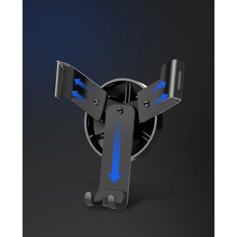 Grawitacyjny uchwyt samochodowy do zamontowania na kratce wentylacyjnej auta. Gadżet jest niezwykle prosty w obsłudze, wystarczy odłożyć na niego telefon, a szczęki zamkną się automatycznie. Posiada trójkątną konstrukcję zapewniającą stabilność podczas jazdy, duże możliwości regulacji (w tym obrotu o 360 stopni) oraz gumowe nakładki, dzięki którym nie porysujemy nawiewu. Do tego specjalne wycięcie, które umożliwia podłączenie ładowarki.