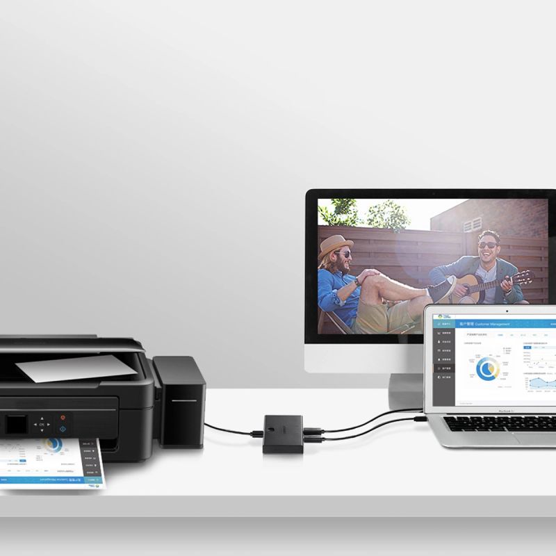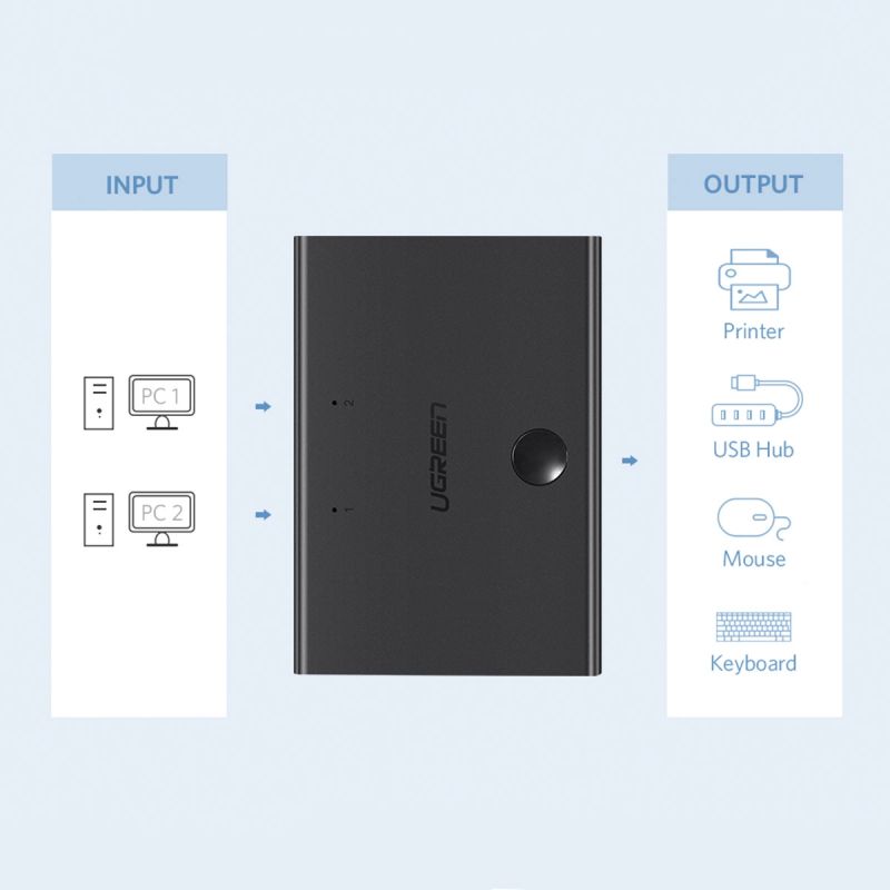 Ugreen switch przełącznik 2xUSB-B - USB-A czarny (30345)