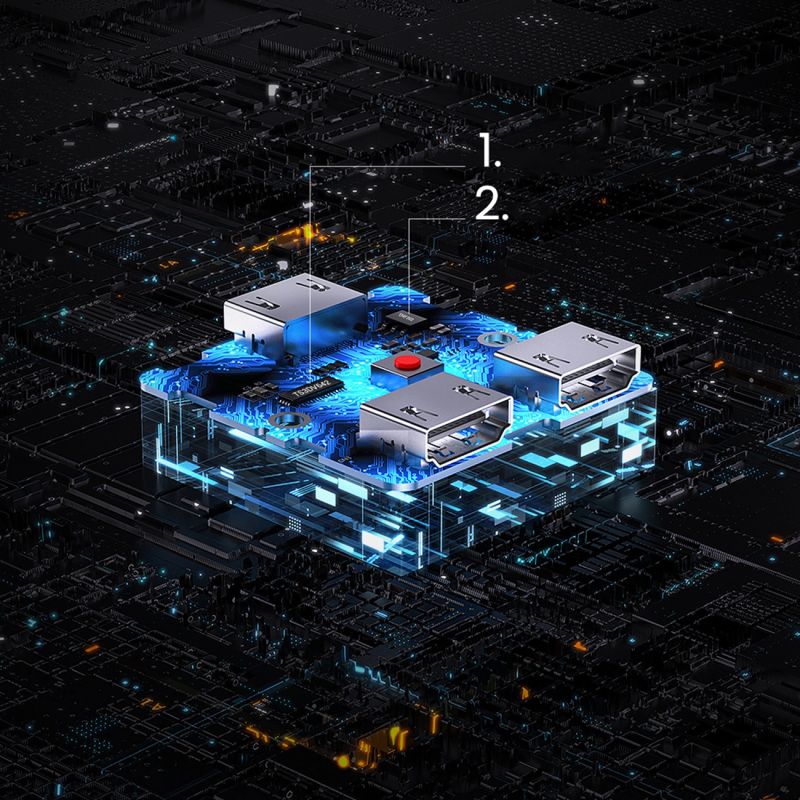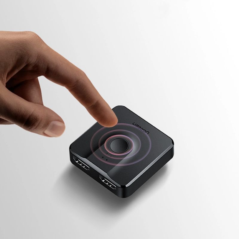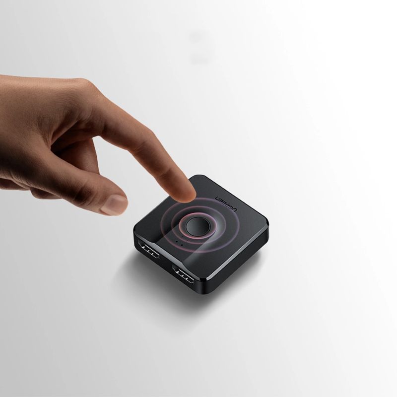 Switch wyposażono w w dwa porty wejściowe i jeden wyjściowy. Górny przycisk służy do łatwego przełączenia się pomiędzy gniazdami. Źródło sygnału oznaczone jestświecącą cyfrą zlokalizowaną na froncie urządzenia. Po uruchomieniu lub podłączeniu źródła obrazu wystarczy nacisnąć przycisk, aby rozdzielacz przełączył się na to urządzenie.