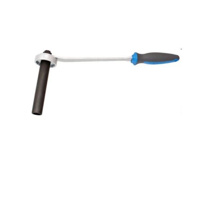 Klucz jest przeznaczony do montażu i demontażu suportów Campagnolo® Ultra-Torque Narzędzie jest połączeniem klucza, śruby z nakrętką i pokrętła. Aby użyć załóż klucz na nakrętkę suportu, tak żeby śruba była włożona do środka - przeciwdziała to ześliźnięciu się klucza i uszkodzeniu nakrętki suportu podczas odkręcania czy dokręcania. Twoja praca jest o wiele łatwiejsza dzięki zastosowaniu 350 mm pokrętła z dwuskładnikową ergonomiczną rączką. Dodatkowy element to 19 mm zabierak pod klucz płaski lub klucz dynamometryczny. Narzędzie może być użyte niezależnie z 19 mm kluczem bez śruby z nakrętką i pokrętłem.