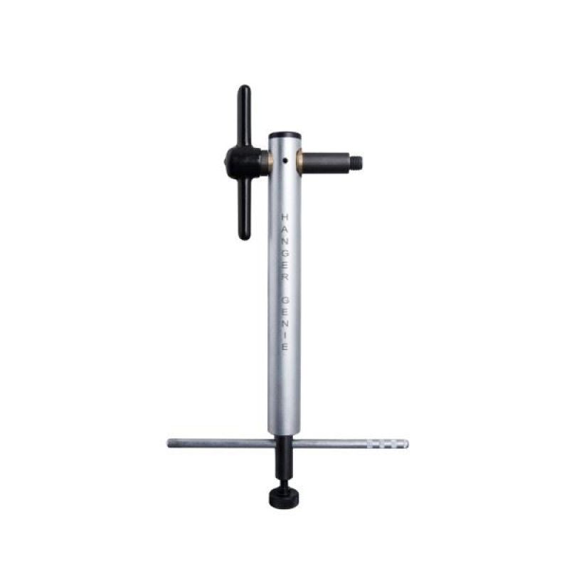 Hanger Genie jest składanym i precyzyjnym narzędziem, służącym do ponownego ustawiania haków tylnej przerzutki i utrzymywania precyzyjnej zmiany biegów. Jest kompatybilny ze wszystkimi rozmiarami kół od 20˝ do 29˝ + a wkręty pasują bezpośrednio w gwinty haka tylnej przerzutki. Precyzyjny miernik można zablokować w miejscu, dzięki czemu nie stracisz pomiaru po naciśnięciu go w kieruknu koła w różnych pozycjach. Dzięki obrotowej dolnej części narzędzia, możesz łatwo oczyścić ramę podczas pracy.