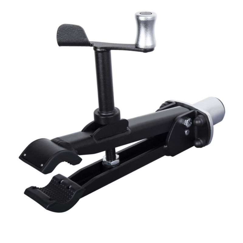 Nasz najtrwalszy i najsztywniejszy zacisk jest przeznaczony do obsługi nawet najcięższych rowerów. Konstrukcja ramy zaciskowej umożliwia otwieranie i zamykanie szczęk równolegle do siebie, a tym samym delikatne i bezpieczne mocowanie roweru. Dzięki okrągłemu kształtowi szczęk mocujących siła mocowania rozkłada się równomiernie na całej powierzchni mocowania. Nisko profilowa konstrukcja szczęk zaciskowych wymaga jedynie 5 cm odsłoniętej sztycy do zaciśnięcia. Szczęki są pokryte przyczepnymi, wymiennymi gumowymi osłonami. Docisk obsługiwany jest za pomocą obrotowej rączki o ergonomicznym kształcie, co pozwala na precyzyjną kontrolę siły zacisku. Adapter montażowy Master Shop Clamp jest wymienny i pasuje do adapterów do stojaków naprawczych innych marek (części nie są dołączone).
