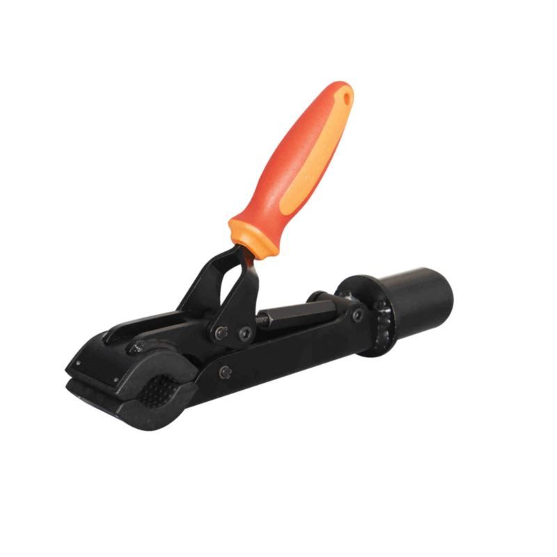 Łatwo dostępna śruba umożliwia korektę rozwarcia szczęk i siłę uchwytu. Śrubę można obracać ręką bez użycia kluczy.