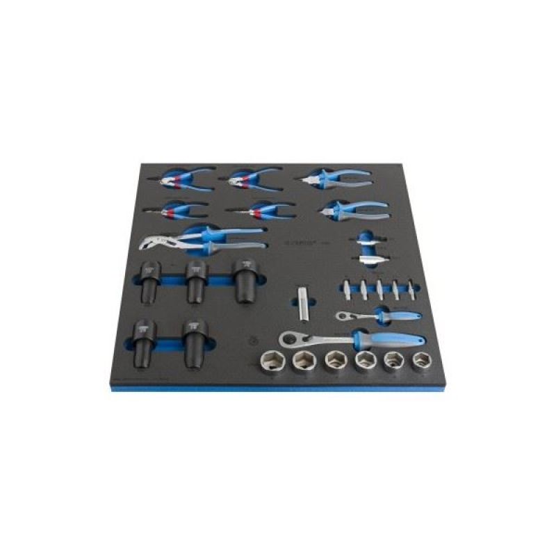 Zestaw składa się ze specjalnie dobranego kompletu szczypiec do obsługi zawieszenia, narzędzi do uszczelek widelca, nasadek do widelca i innych.