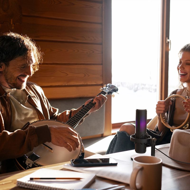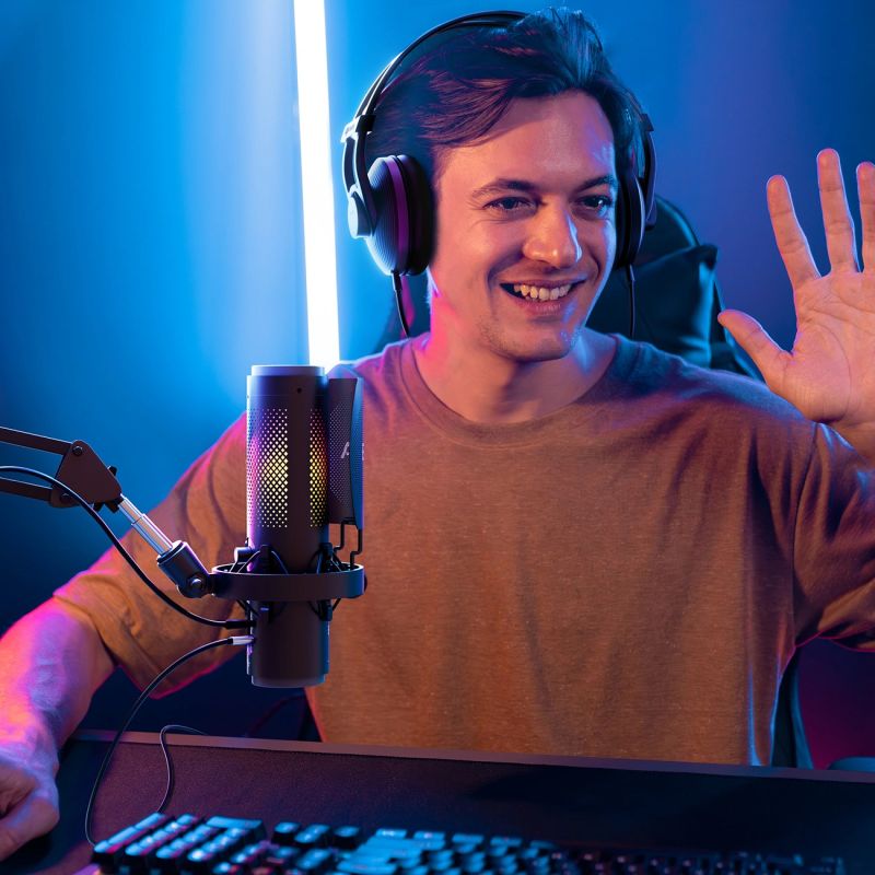- Podświetlenie RGB: możliwość zmiany efektów wizualnych mikrofonu.
