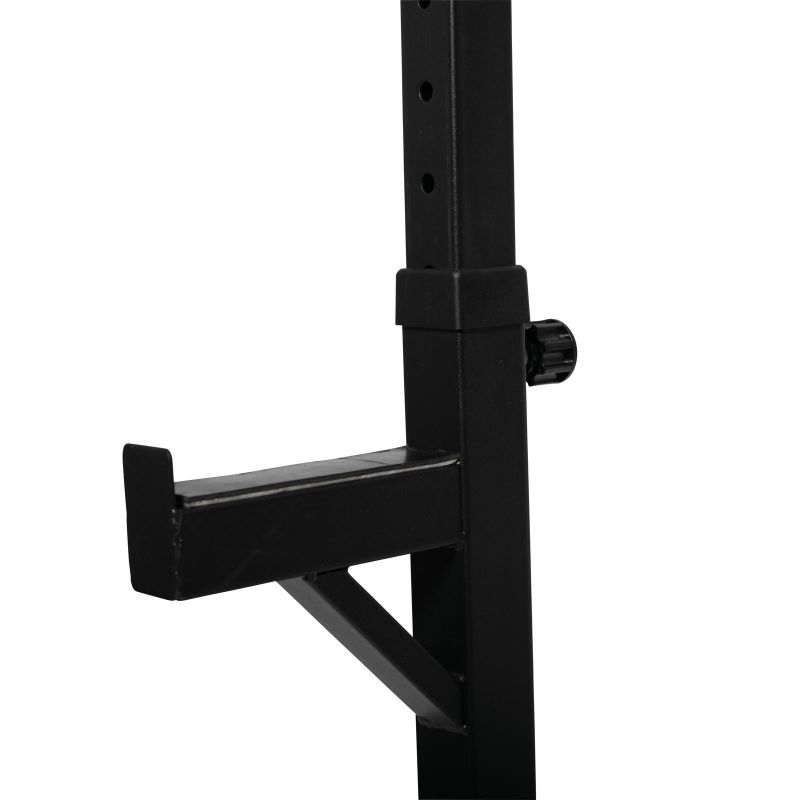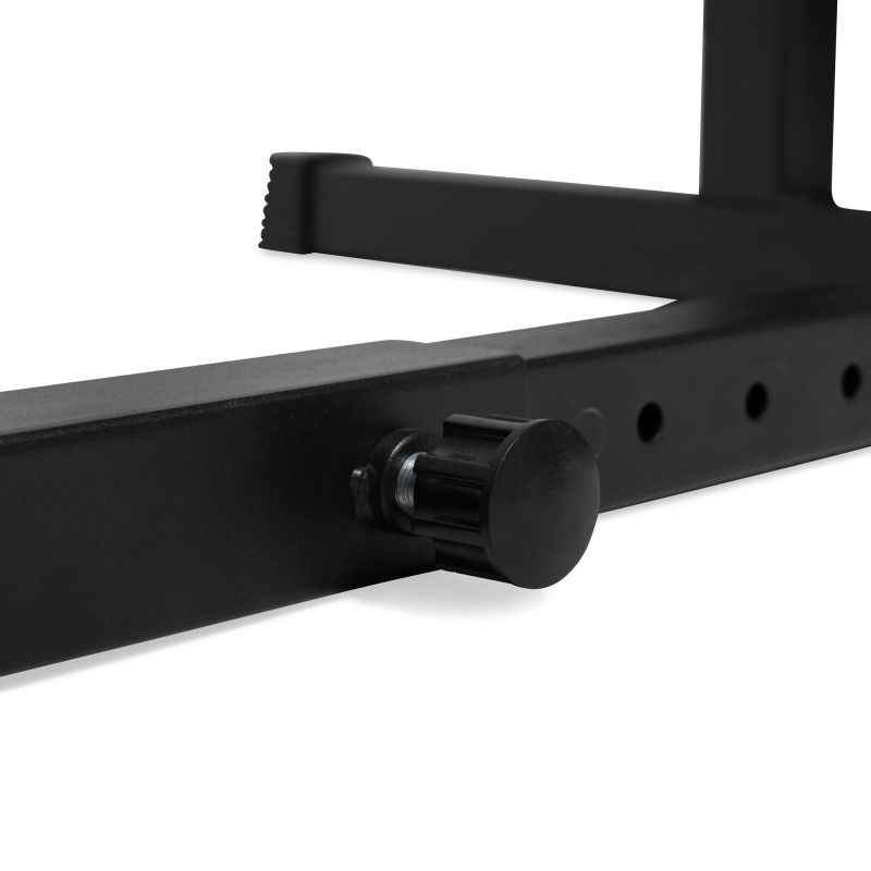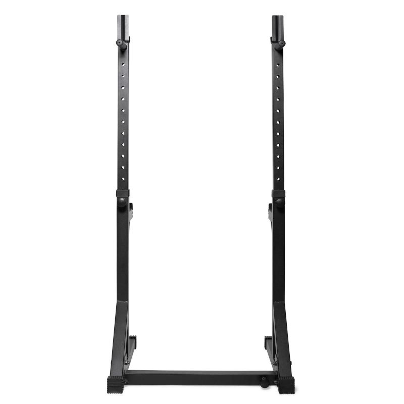 Regulowany stojak na przysiady VirtuFit jest łatwy w montażu, łatwy w użyciu i łatwy do przechowywania po zakończeniu. Ten stojak na przysiady jest wystarczająco kompaktowy, aby zmieścić się w małym studiu fitness w domu.