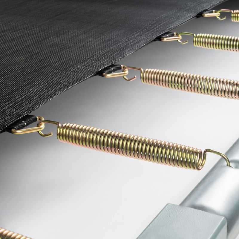 Chcesz, aby skakanie było nie tylko pełne frajdy, ale też bezpieczne? Cała konstrukcja jest jednolicie czarna, co nadaje jej stylowy wygląd i harmonijnie komponuje się z każdym ogrodem. Wodoodporne i odporne na promieniowanie UV materiały gwarantują trwałość i odporność na warunki atmosferyczne, co pozwala pozostawić trampolinę na zewnątrz bez obaw o uszkodzenia. Siatka ochronna z podwójnym zamkiem błyskawicznym zapewnia pewne zabezpieczenie, a szeroka, piankowo wypełniona osłona chroni przed kontaktem z metalowymi sprężynami. Sprężyny oraz elementy metalowe również zabezpieczono przed korozją. Materiały odporne na wilgoć i promieniowanie UV pozwalają pozostawić trampolinę na zewnątrz przez cały sezon .