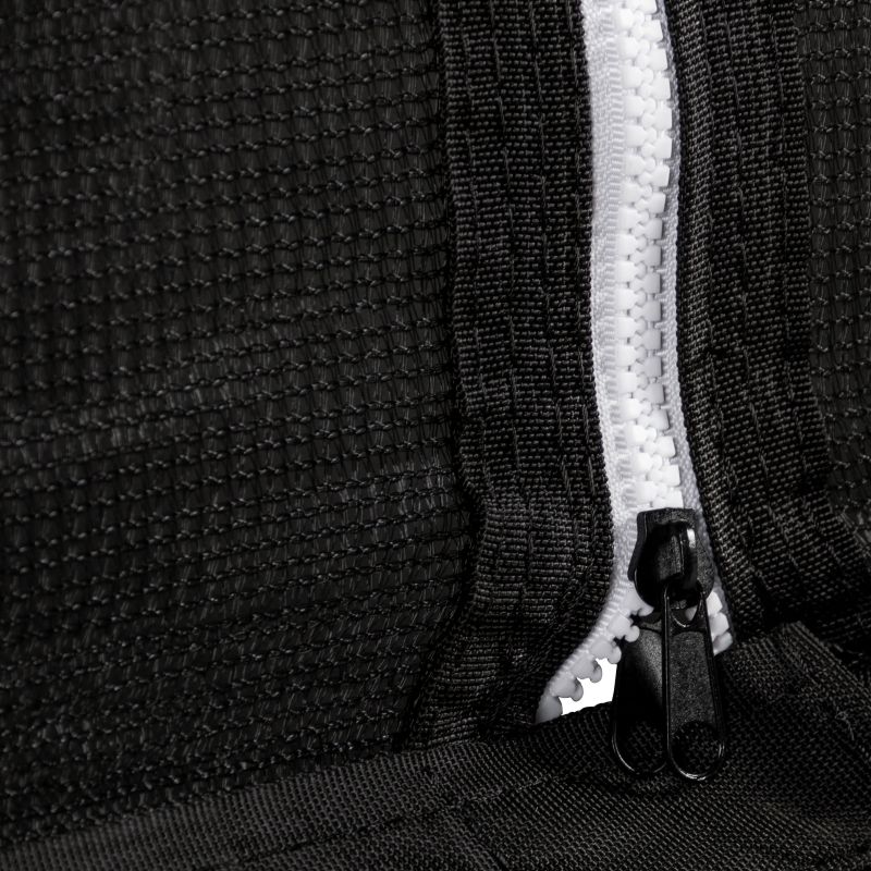 Chcesz, aby skakanie było nie tylko pełne frajdy, ale też bezpieczne? Cała konstrukcja jest jednolicie czarna, co nadaje jej stylowy wygląd i harmonijnie komponuje się z każdym ogrodem. Wodoodporne i odporne na promieniowanie UV materiały gwarantują trwałość i odporność na warunki atmosferyczne, co pozwala pozostawić trampolinę na zewnątrz bez obaw o uszkodzenia. Siatka ochronna z podwójnym zamkiem błyskawicznym zapewnia pewne zabezpieczenie, a szeroka, piankowo wypełniona osłona chroni przed kontaktem z metalowymi sprężynami. Sprężyny oraz elementy metalowe również zabezpieczono przed korozją. Materiały odporne na wilgoć i promieniowanie UV pozwalają pozostawić trampolinę na zewnątrz przez cały sezon .
