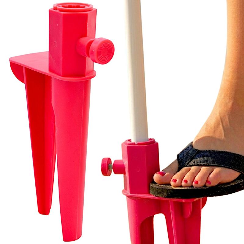 Zastanawiasz się jak zamontować parasol na plaży? Z pomocą przyjdzie WBIJANA BAZA DO PARASOLA 28CM CZERWONA!