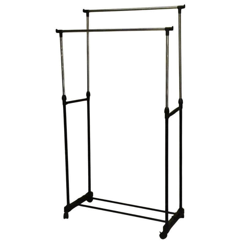 Podwójny, regulowany i mobilny — wieszak Excellent Houseware to nowoczesne rozwiązanie do przechowywania odzieży w domu. Zmieści więcej niż standardowe wieszaki, a jednocześnie zajmuje niewiele miejsca. Idealny dla wszystkich, którzy chcą wygodnie uporządkować swoją garderobę.