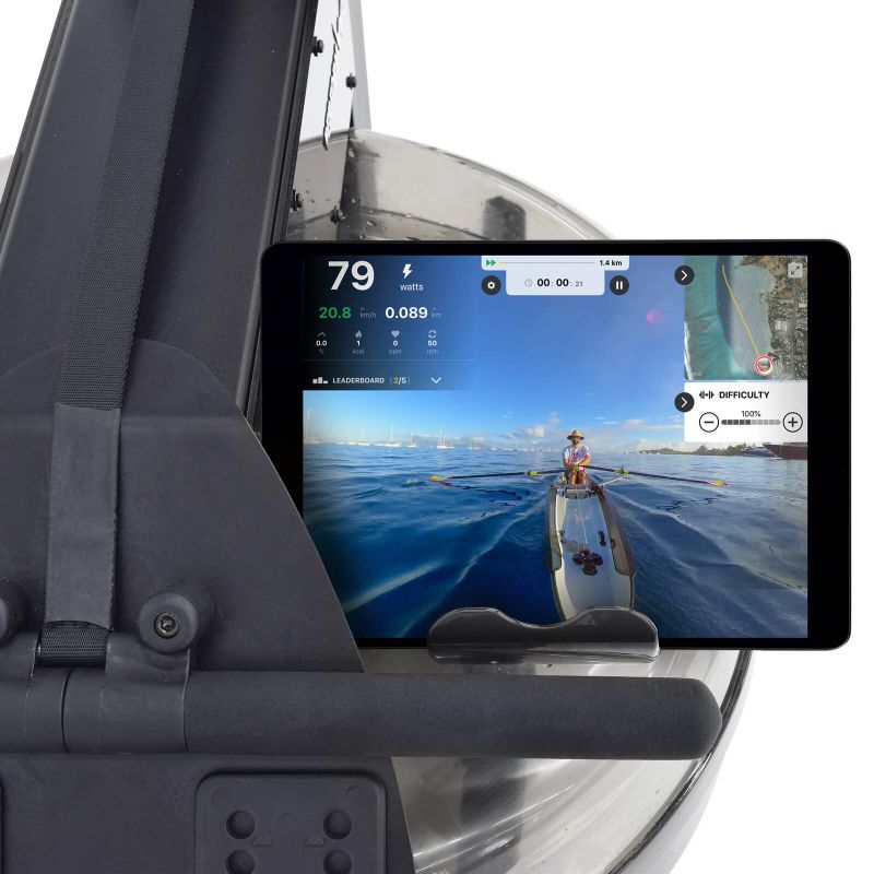 Wioślarz łączy się z aplikacjami Kinomap oraz iConsole. Dzięki temu masz dostęp do dodatkowych tras treningowych, możesz brać udział w wirtualnych wyścigach albo rywalizować ze znajomymi, a Twoja aktywność stanie się ciekawsza i bardziej urozmaicona.