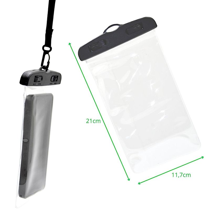 Chcesz bezpiecznie korzystać z telefonu podczas pływania, na plaży lub w czasie deszczu? WODOODPORNE ETUI POKROWIEC NA TELEFON 11,7X21CM PVC CZARNE GRUNDIG zapewnia skuteczną ochronę smartfona przed wodą, wilgocią i piaskiem.