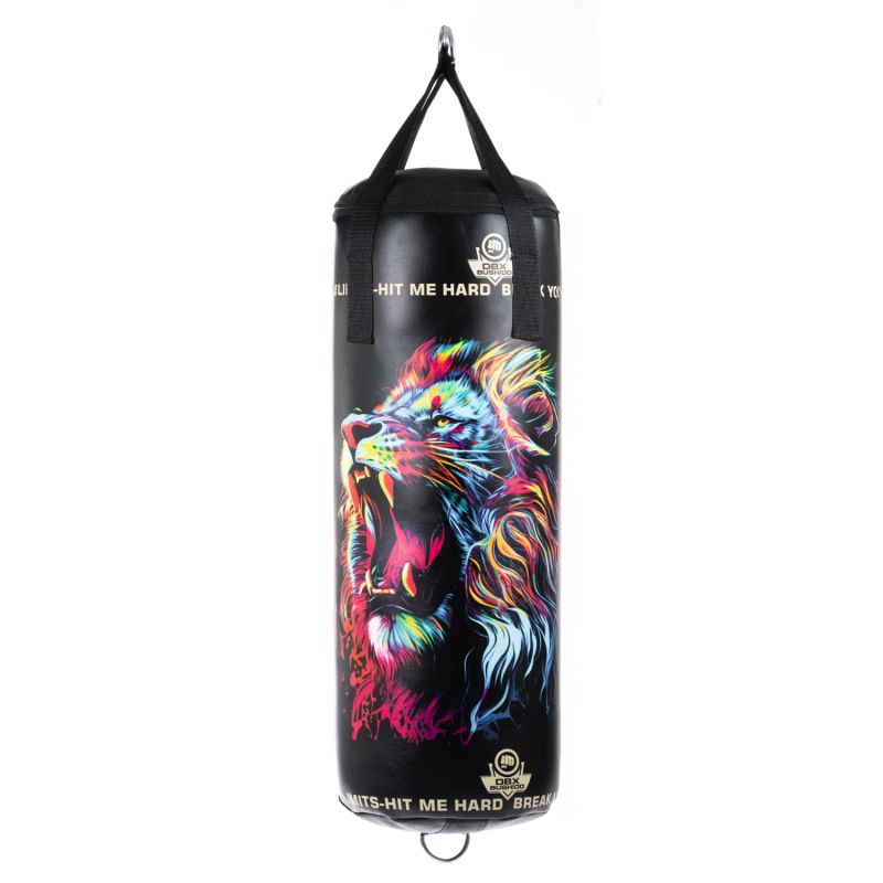 Dynamiczny motyw Lwa na czarnym tle dodaje charakteru i energii – każdy trening z tym workiem wygląda jak scena z legendarnej opowieści o wojowniku.