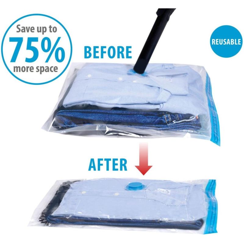 Skończył się sezon i chcesz zaoszczędzić miejsce w szafie? A może chcesz przechowywać pościel lub koce w szczelnym niedostępnym dla różnych drobnoustrojów i owadów miejscu. WOREK TORBA PRÓŻNIOWA DO PRZECHOWYWANIA UBRAŃ, POŚCIELI 60X80CM ALPINA to przede wszystkim ogromna oszczędność miejsca na Twoich półkach i w szafie, bo aż do 75%. To również doskonała metoda przechowywania dla alergików i nie tylko. Szczelnie zamknięta torba z pomocą specjalnego klipsa ochroni Twoje ubrania przed roztoczami, wilgocią i nieprzyjemnymi zapachami. Po spakowaniu rzeczy do torby i utworzeniu próżni z pomocą odkurzacza nie będziesz się już martwić, że np.: sweter czy zimowa kurtka będzie nieprzyjemnie pachnieć, a dodatkowo ich kolory dłużej zachowają świeżość. WOREK PRÓŻNIOWY DO PRZECHOWYWANIA UBRAŃ, POŚCIELI 45x60cm ALPINA doskonale ochroni Twoje rzeczy przed molami czy innymi insektami. Próżniowo spakowane ubrania to również świetne rozwiązanie podczas przeprowadzki czy podróży, dzięki oszczędności miejsca więcej spakujesz do walizki lub torby. Nie zwlekaj z zakupem, dołącz do grona zadowolonych klientów!
