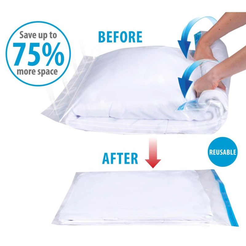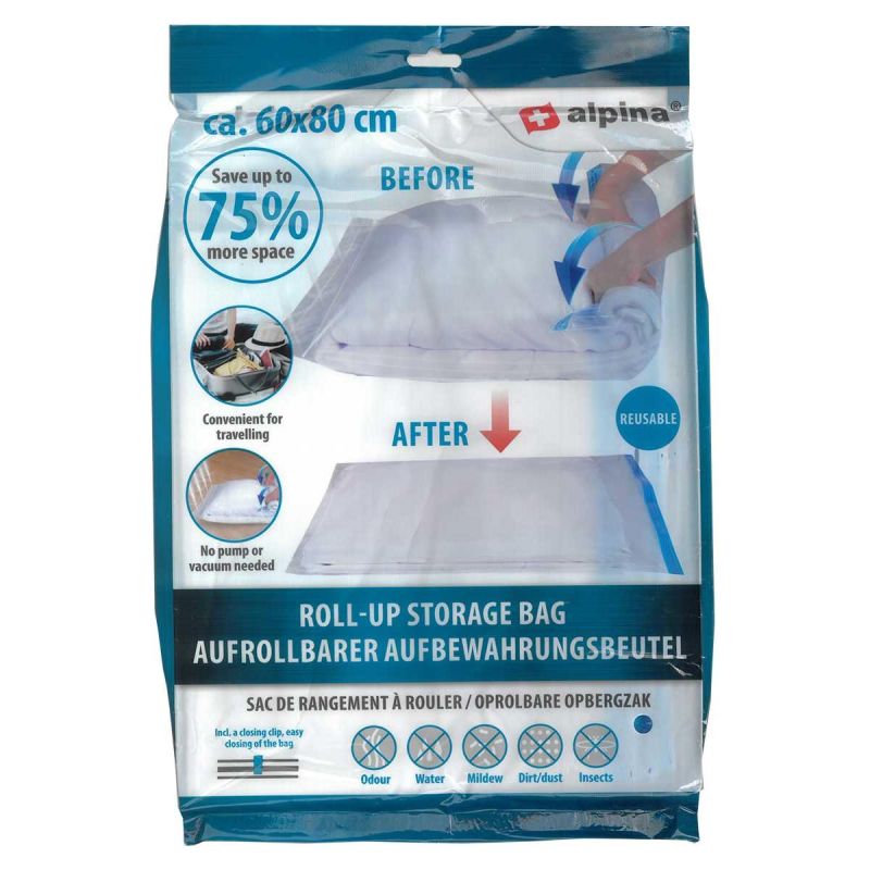 Skończył się sezon i chcesz zaoszczędzić miejsce w szafie? A może chcesz przechowywać pościel lub koce w szczelnym niedostępnym dla różnych drobnoustrojów i owadów miejscu. WOREK TORBA PRÓŻNIOWA DO PRZECHOWYWANIA UBRAŃ, POŚCIELI 60X80CM ALPINA to przede wszystkim ogromna oszczędność miejsca na Twoich półkach i w szafie, bo aż do 75%. To również doskonała metoda przechowywania dla alergików i nie tylko. Szczelnie zamknięta torba z pomocą specjalnego klipsa ochroni Twoje ubrania przed roztoczami, wilgocią i nieprzyjemnymi zapachami. Po spakowaniu rzeczy do torby i utworzeniu próżni z pomocą rolowania nie będziesz się już martwić, że np.: sweter czy zimowa kurtka będzie nieprzyjemnie pachnieć, a dodatkowo ich kolory dłużej zachowają świeżość. WOREK TORBA PRÓŻNIOWA DO PRZECHOWYWANIA UBRAŃ, POŚCIELI 60X80CM ALPINA doskonale ochroni Twoje rzeczy przed molami czy innymi insektami. Próżniowo spakowane ubrania to również świetne rozwiązanie podczas przeprowadzki czy podróży, dzięki oszczędności miejsca więcej spakujesz do walizki lub torby. Nie zwlekaj z zakupem, dołącz do grona zadowolonych klientów!